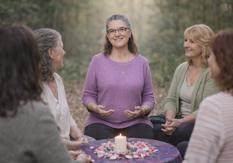 Espacios de encuentro y contención entre mujeres que transitan procesos similares, acompañándose con respeto, escucha y presencia.